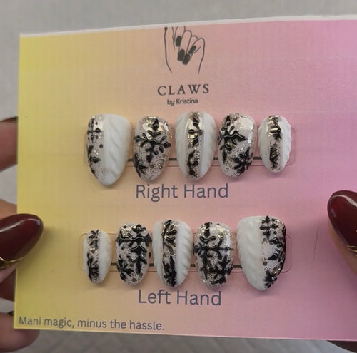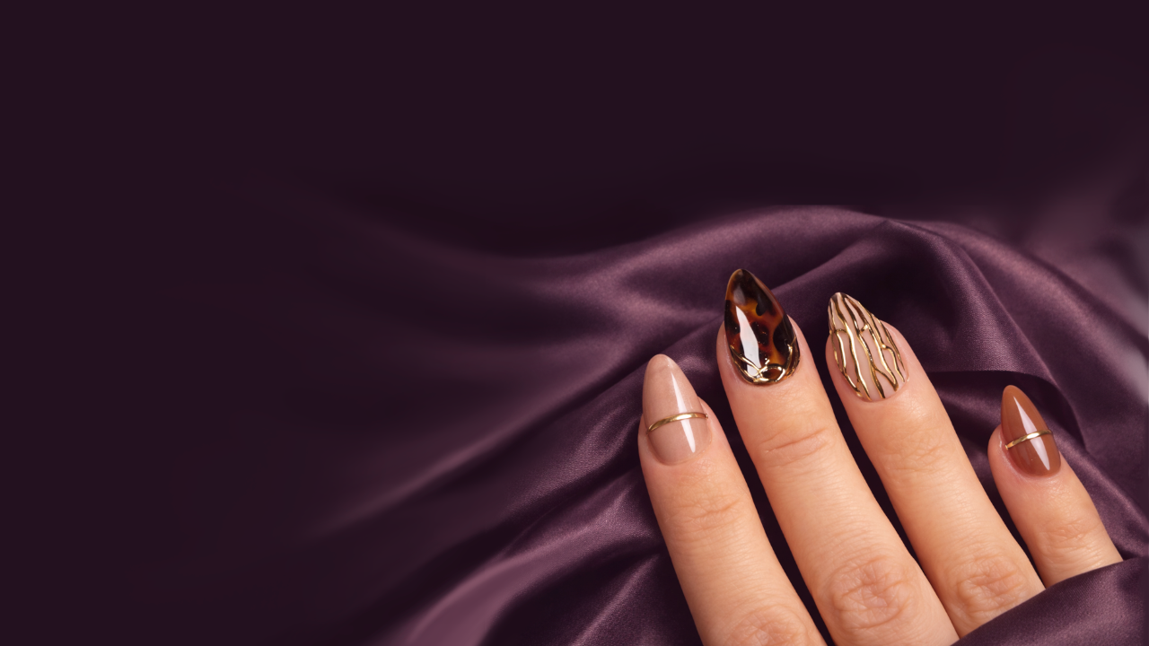 Autumn Muse Press-On Nail Set – Tortoiseshell, Florals & Golden Accents