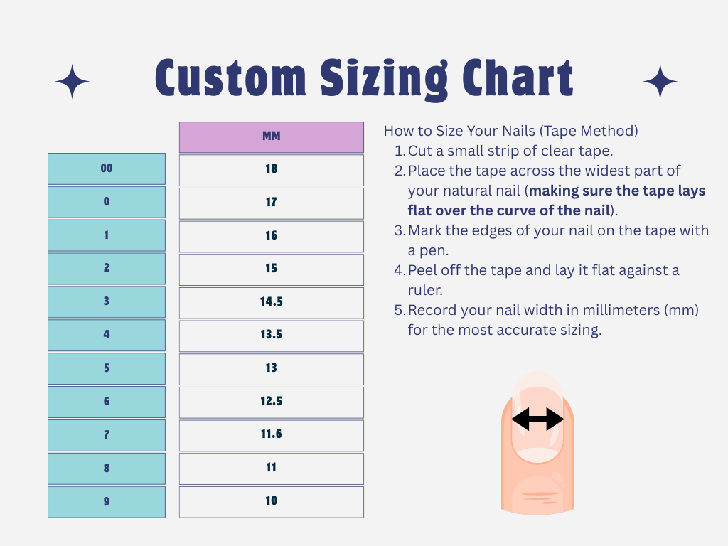 Not sure about your nail size? No worries—just add a sizing kit to your order, or message me and I’ll be happy to help!
